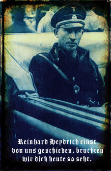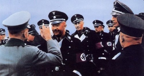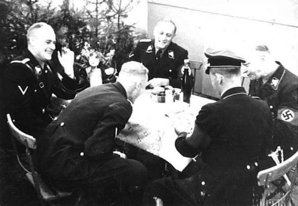 Heydrich has his hat cocked at a positively adorable angle in this photo. For a second there I thought that the Italian guys had the number 1 on their caps but realized it was that fascist axe-stick-bundle thing they loved.