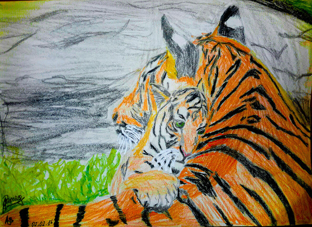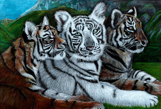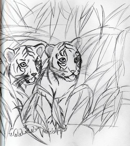 This is like.. way adorable. I love the cub aaaalll the way to the right.. He's all like "Yeah! Lookit me!" It's too cute. I love the colors, too. They actually look like tigers (which I have yet failed to accomplish).