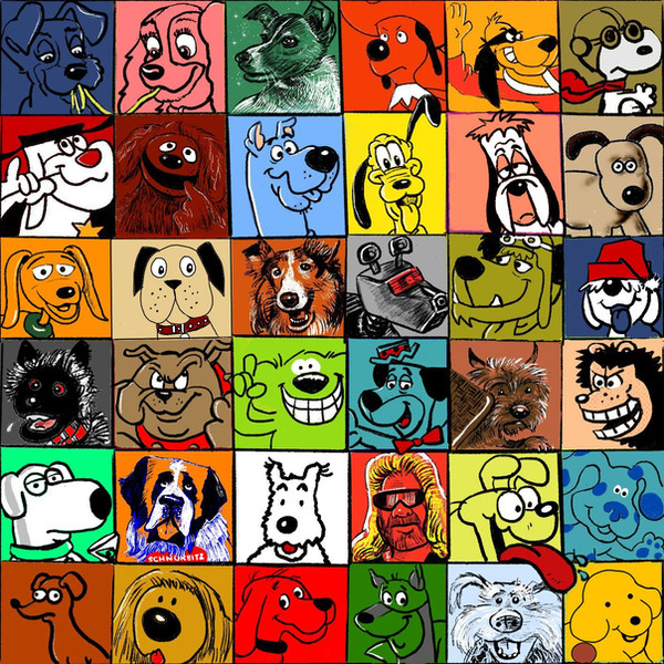 Here's another collage, this one a sort of tribute to various cartoon dogsThe dogs featured are