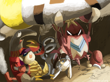 aahh! Really great artwork! the background looks totally fleshed out and detailed! also gotta love meowy and freezeclaw too, Colin better choose his next move wisely