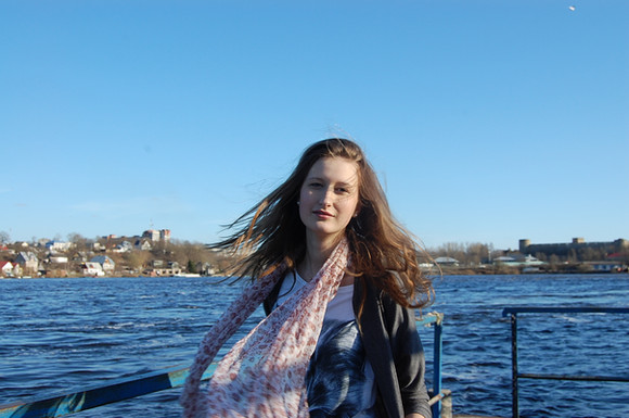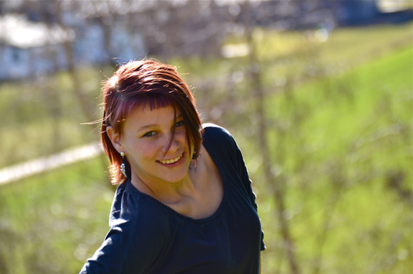 This is way better then the further shot. Eyes are drawn straight to the smile. There's not much for the eyes to wander. A quick flick and your eyes are back to the focus. And what a focus. Nice pose, good sense of happiness.