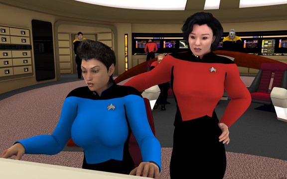 The Saipan's Operations Officer, T'Shaara has a pointed exchange with Chief Medical Officer, Vael.