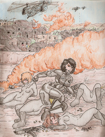 The mission was accomplished, she had the data the client contracted her to retrieve, and the Azimuth Pharmaceutical chemical processing plant had been secured for the time being. She stopped by the Jeep to enjoy a well-earned cigar and let the adrenaline dissipate, with the two Afra prisoners she'd captured in tow. It would be a long drive back to the safe house, and she-"Hey, uh, why does your gun shoot strawberry jam? Can I have some? I'm really hungry."