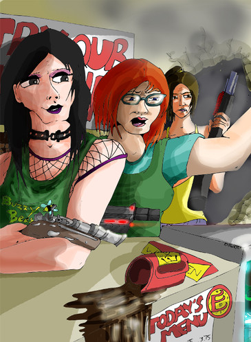 Sylvia and Chrissy recuperate at Moonbeam's diner after a particularly nasty match the night before.Chrissy belongs to