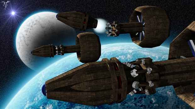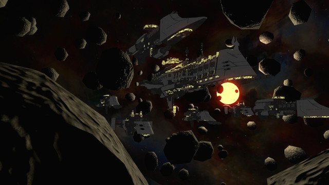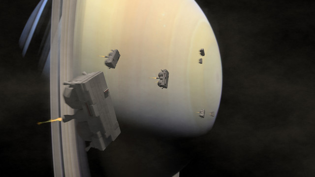 Five days of low velocity thrust makes for a long, boring journey, but it's cheap, and doesn't light up the enemy's sensors. The dull thuds of the IMP retrograde thrusters echoed through the recreation deck. The task force had finaly arived at their destination.