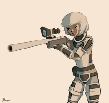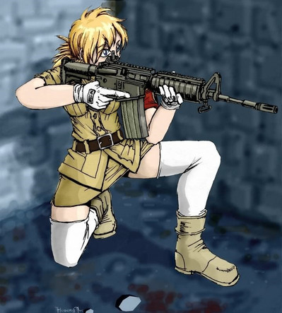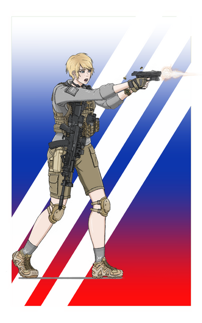 Everyone's favorite Blank, 's Kim, gets some trigger time on the target range at a KHOROS black site.KHOROS, Blanks, and Kim ©