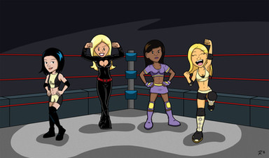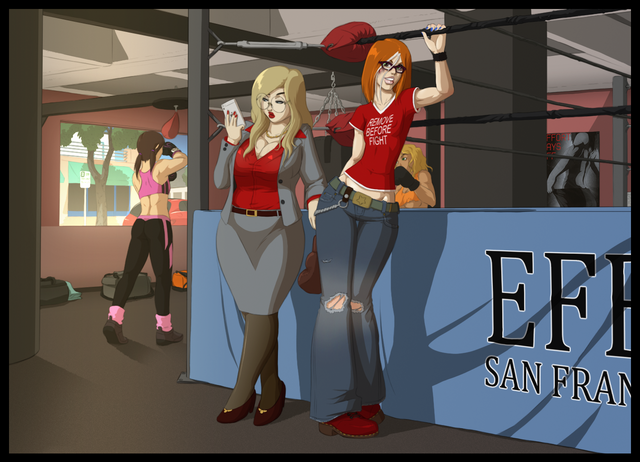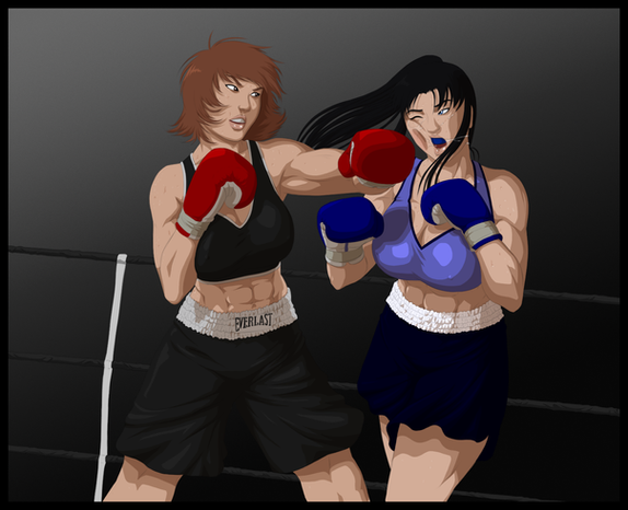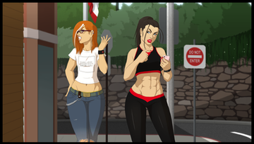 Let it never be said that you neglect the small details. Even with all the foxy fighters stealing the center spotlight , you've still managed to make that gym double doorway entrance look just as enticing. And what a bold gym it is, having non-tinted windows ad the ring right out front! Not afraid to let the fully bare and brutal action be displayed to all.