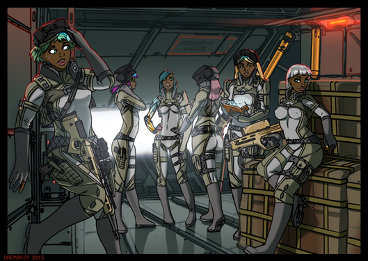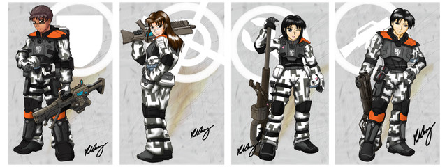 Loving how the gal with the radio's carrying a FAMAS. Even though the FAMAS is starting to fall out of favor, nobody told her! XDD She loves hers and won't let her superiors confiscate it due to it being 'obsolete'. XDD Meanwhile it looks like the gal second from the right, who's lighting the officer's cigarette, she's packing a full-length M16 and no scope? Just iron sights for her as a sharpshooter? XDD