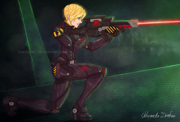 's Kimberly Williams under fire during a mission to uncover the contents of an illicit shipment awaiting transfer at Antilia. Seems the security didn't dig KHOROS snooping around their cargo pens.has built quite an impressive setting involving secret societies and the genetically enhanced "blanks" that carry out their will, and has an awesome gallery of work to boot! Definitely check them out!