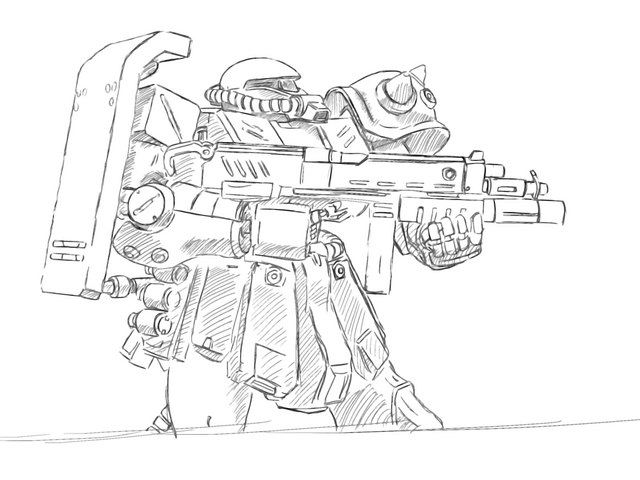 Just an MS-06F Zaku II chillin'.Part of a bigger scene I'm working on.