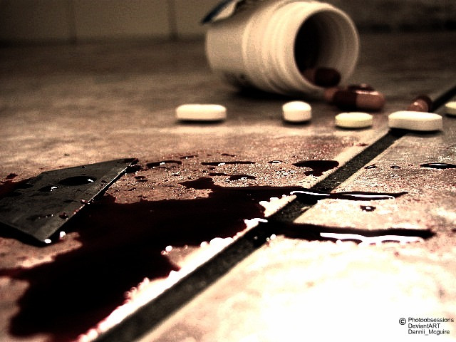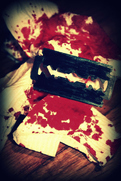 prescription cutting? interesting concept, but it is true that I somehow always feel better after a nice deep cut. thus leading into the love hate problem. I love the feeling, I love the release, and I love the blood but I hate the results after the initial cut. And I'm afraid the addiction I have received is much worse. Tho its a great picture.