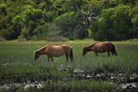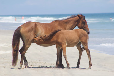 I live near Beaufort North Carolina and around here there is Carrot Island and Shackleford Banks (part of the Outer Banks) both have wild ponies that swam there after ship wrecks. Going to "Shack" as we call it is always a fun experience and I always love the surprise visits from our wild friends.