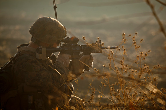 111226-A-VB845-036A U.S. Army Soldier provides security outside of the Ananzai Village, Kandahar Province, Afghanistan,