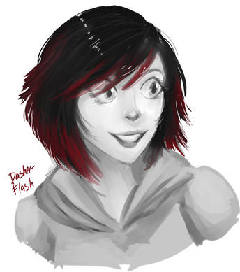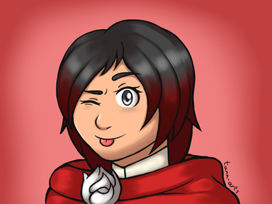 I know, I know, I said I wouldn't be active here until finals were done, and that should include no uploads. Buuut I had a hard time getting to sleep last night, so I doodled this to help take my mind off things. One quick shade job later and viola, it's...still kinda messy. But I feel like submitting it anyway...so yeah. X'D Hope you like this silly little thing regardless.Ruby Rose (C) montyoum , Rooster Teeth