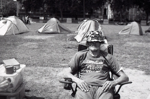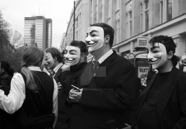 I think the protest was the one on Goodge Street, or near Goodge Street station...occured on a saturday, and it was a protest against the scientology poeple...the protestors were wearing V masks...
