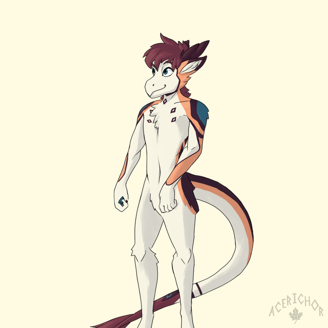 #anthro #artistic #carp #cellshading #dragon #hybrid #koi #nude #portrait #posing #stretching