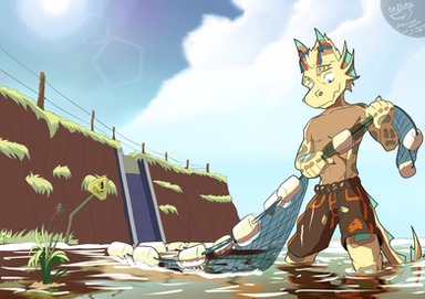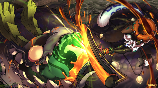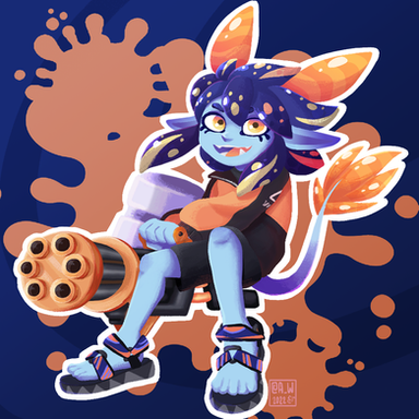 #anthro #cellshading #celshading #commission #dragon #dynamo #fanart #mainstage #roller #sea #slug #splatoon #starfish #taphen