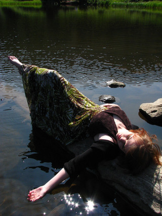 i thought this was a painting too! i would honestly paint a pic just like this. maybe change the water, to grass. but it's so pretty. i love the positioning of her arms, clothes, and the light. it is all very perfectly put together.