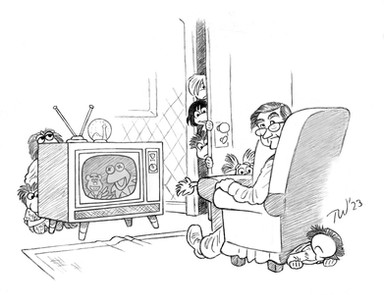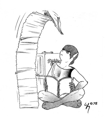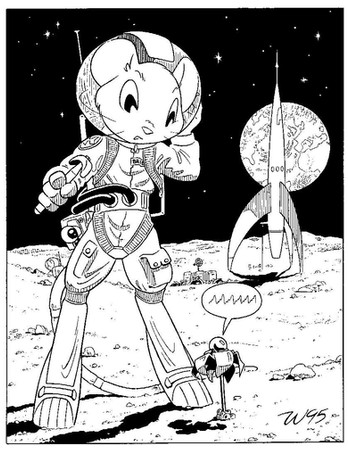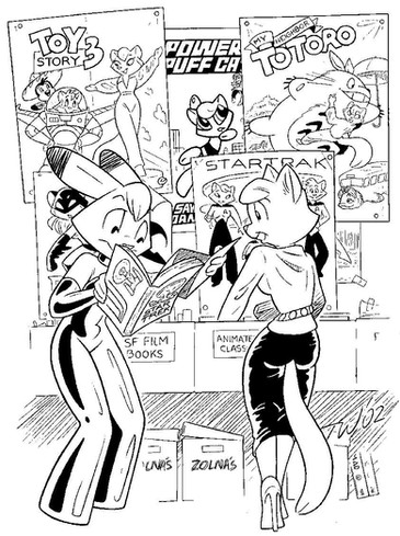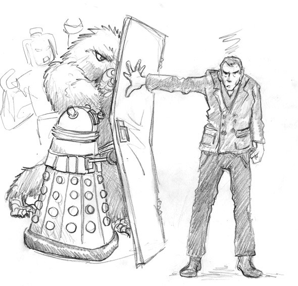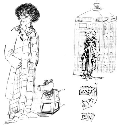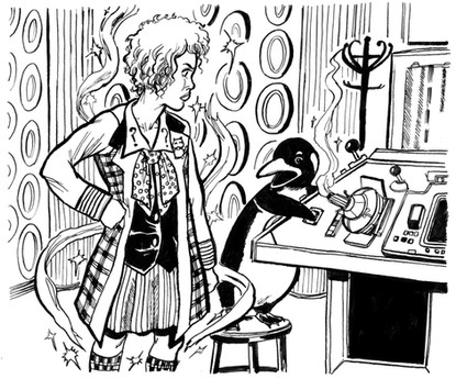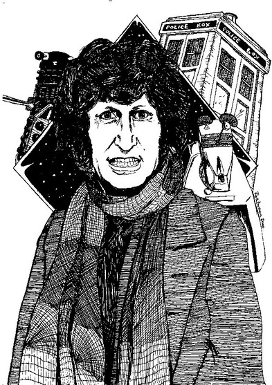 To be honest, I never cared much for Dr. Who, not even the Tom Baker incarnation. Nor do I find kangaroos appealing. But when the editor of a fanzine asked me to do Dr. Who as Dr. Roo, I could't resist the challenge -- here was a request that was Something Completely Different.However, don't draw any inferences from this. I could just as easy rebuff the next fan who works up the courage to make a request.