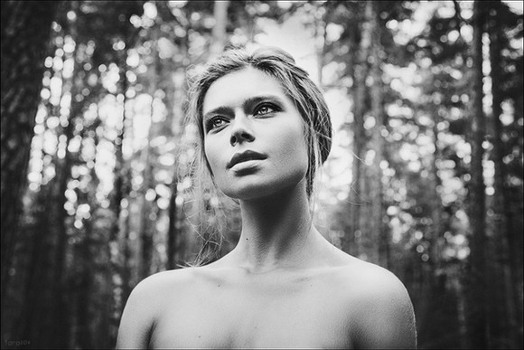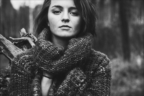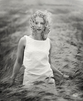 You're as much artist & designer as photographer. That background shape and blending is so subtle and so delicately balanced with your model. Light, medium, dark, top white, bottom black, bottom of model white, top of model dark--it's a perfect balance all the way throughout. And you've got a selection of models that are mid 70's-ish look, beautiful. Smart and confident composer. Very very nicely done.