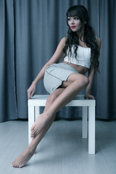 Sensual pose. Β Was there some special effect or technique used here? Β Her legs seem slightly larger than expected in terms of relative proportion to her upper body.