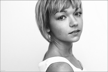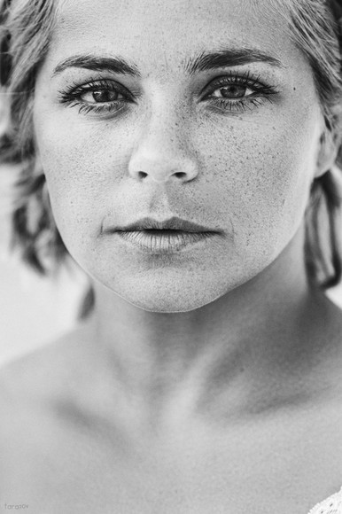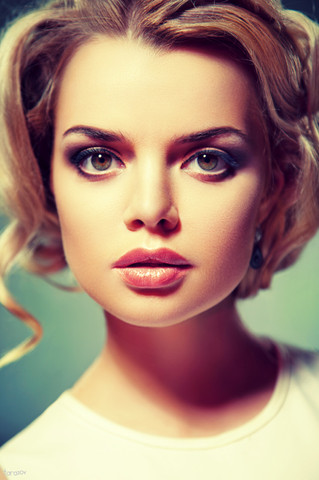 Wonderful eyes, lovely hairdo and yes, her expression is truly fantastic, so vulnerable. Like she felt exposed ...