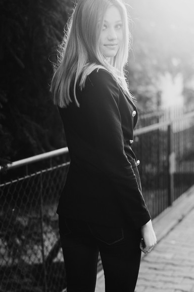 This picture has a very bright feeling. It can't be just the smile. I think maybe because the upper half which has her expression, could have been washed out. But her hair provides a separation between her expression and the overexposed sky. Which adds to the "bright" and upbeat feeling. Β I'm wondering, was this a conscious decision or did it just happen? Β