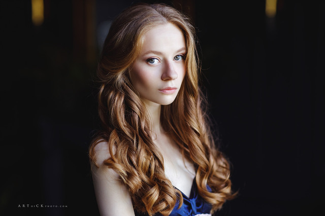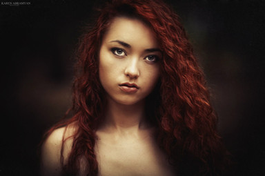 Intense stare. Lovely tones complimenting her freckled skin.