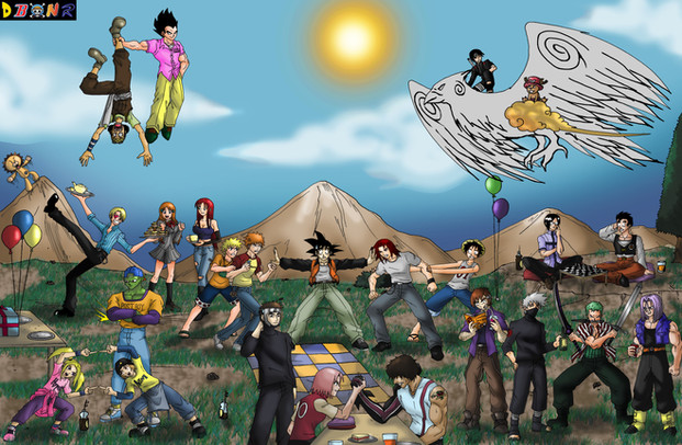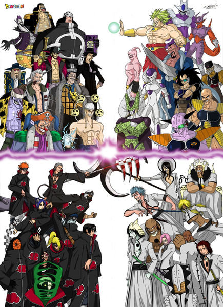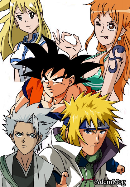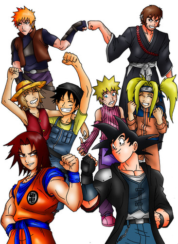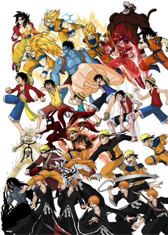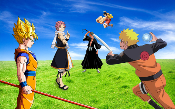 wuau whay pic awesome of goku lyffy naruto and ichigo with tecniches powerfuls is awesome is one great work colugrations friend.