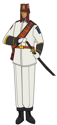 A photo of Captain Ayzen receiving the Sword of Honour from the President of Singapore during his commissioning parade in 2031.Originally just a Corporal, he was promoted upon his miraculous return despite being declared KIA after nuking an JUIS naval fleet immediately to the rank of Captain, on the President's special orders to members of the Alpha Lions who had fought in Africa for ten long years against jihadist remnants. He was reinstated into the Singapore Armed Forces with all his previous decorations, including the first Star of Temasek initially awarded posthumously for his heroic act of sacrifice during the Second Battle of Singapore, together with additional decorations awarded for their actions in Africa along with skill badges earned while in the service of the African Union Armed Forces in their war against JUIS remnants.