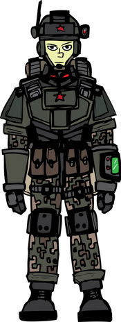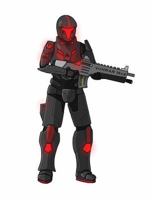 The Mobile Expeditionary Projection Infantry (MEPI), also known by their more common name, the 'Marines', is an intergalactic rapid-response force designed for combat in zero-gravity environments, ship boarding and eliminating threats within and beyond the IRS's borders witth utmost haste. They are also primarily responsible for the security of far flung colonies, distant outposts and escorting research teams in their expeditions to foreign and potentially hostile places.IRS Marines are primarily equipped for zero-gravity combat first and foremost. They are equipped with full body vacuum suits, thruster packs and state of the art full face airtight helmets that come with advanced HUD and scanning capabilities, far more capable than the ones issued to the Regular Army. Bullpup 5.56mm railrifles are their preferred choice of weapon, since standard conventional gunpowder small arms do not work properly in space. Magnetic breaching grenades also come as a standard in the Marines' arsenal to burn through enemy bulkheads and create points of entry.