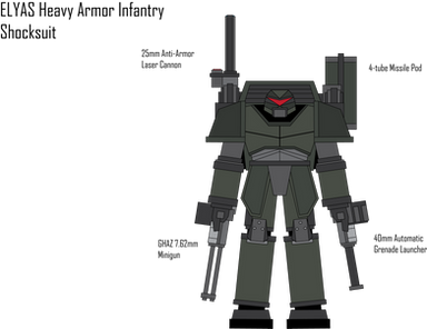 OverviewThe IRS had been well aware of its technological inferiority compared to other factions in Ancerious for decades, but comfortably believed that the numerical and the logistical superiority afforded by its simple arsenal was enough to compensate. However, the massive casualties taken during the Battle of Klendathu and the ground battle on Rubikon II had revealed that the Regular Army needed a significant upgrade, especially the infantry who had been facing enemy troops with advanced armor with nothing but gas operated rifles.