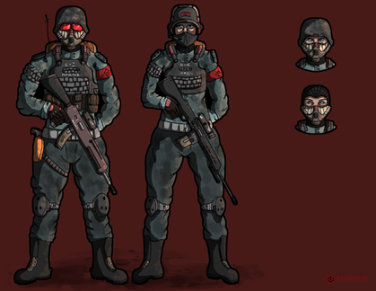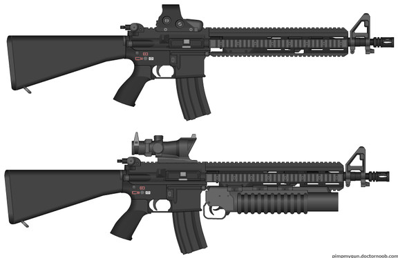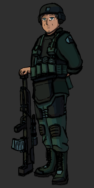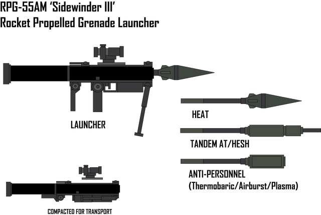 The heart of the rifle squad and the primary instrument of the common rifleman. The S36A1 is an improved model of RANGSI's first standard-issue automatic railgun rifle, the S36, which was retooled and slightly redesigned to be more reliable in the muck, swamp and mud the rifleman wades through for a living. The A1 model brings back bullet casings, this time instead of gunpowder the casings are reversed and they are filled with electroactive oxidiser cleaning agents to clear the barrel of any dirt or foreign matter stuck inside. Because of the increased size due to the return of the bullet casing the magazine capacity is reduced back to 30 rounds but reliability is significantly increased and maintenance is easier. All soldiers are riflemen and all riflemen are grenadiers, that is why the standard configuration of the S36A1 rifle for every rifleman features an underbarrel 40mm grenade launcher in order to enable the squad to attack viciously and defend tenaciously. If you lose this rifle, you lose your weekend.