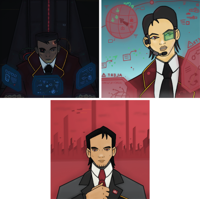 From left to right, a trucker-ganger who hauls shady freight through crime-ridden areas, a corpo with a million-credit name and a thousand-credit suit, and a humble farmer of a state-owned vertical farm. To the foreign eye, they are all completely different, and live in completely different worlds.But to you, me and them, they are all part of the same Company - the 2nd Company of the 143rd Motorized Infantry Brigade to be exact. Take a closer look, and you will see the 2nd Company's horned snake on the ganger's jacket, as a lapel pin on the corpo's collar and as a patch on the farmer's apron.