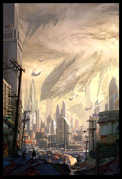 wow, gorgeous work! are the humans slaves of the aliens? cause i can't understand why they aren't in panic. ^^