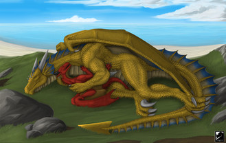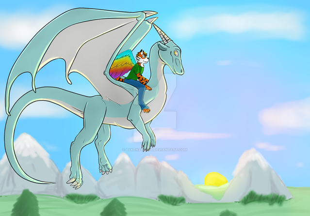 This is a birthday gift for one of my best friends, Lari (or Razen )Targon gives Razen a free for 20-minute dragonflight around Dragonia, since Razen barely fly. Targon enjoys being ridden by an anthro dragon.