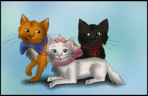 My part of a wonderful 50 Classic Movies collaboration at !Three cute kittens from the Aristocats movie: Marie, Berlioz, and Toulouse.