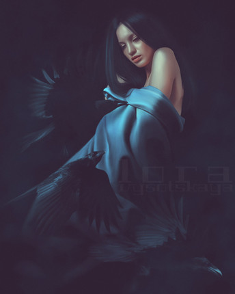 #crows #dead #hair #petals #woman
