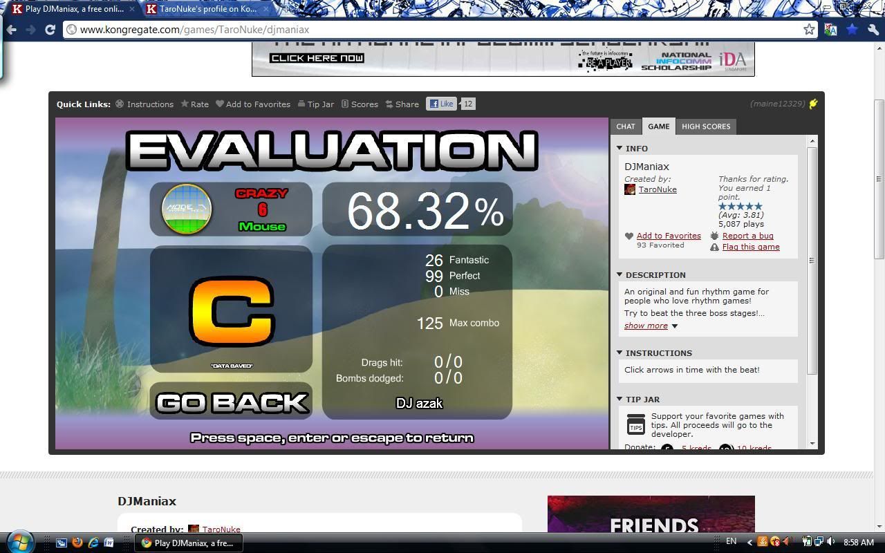 DJManiax is totally unique to the flash platform. It is a rhythm game in which you must click on notes (or hit the correct keyboard keys, depending on your CHOSEN PLAY MODE) when the timeline is aligned with their centre.