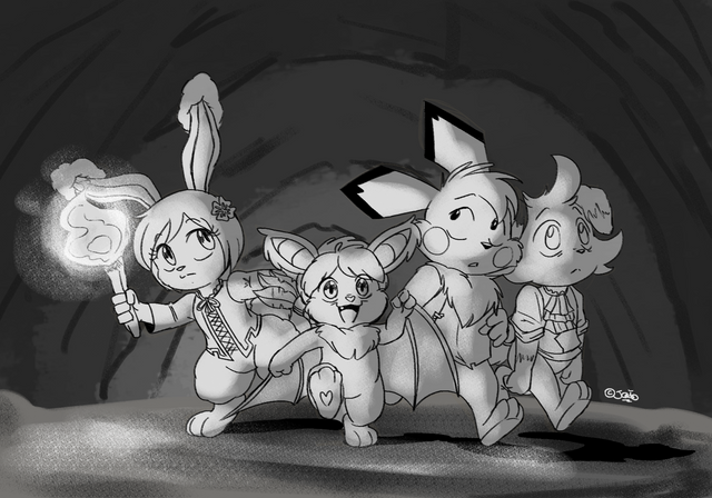 #commission #fanart #kuro #pmd #pokemon #shiny #treasure #pachirisu #tarri #mystery_dungeon #shiny_pachirisu