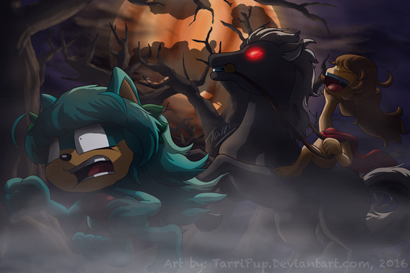 This is a scene I've drawn from the game "The Legend of Zelda: Majora's Mask" where a Skull Child who is wearing Majora's Mask, a mask with great evil inside is using a foul power to cause the Moon to fall.. and yes the Moon has a creepy scary expression!
