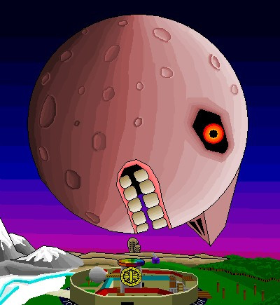 Get's freaky when the mask itself discards the Skull Child (the mask says "A puppet which has no use is mere garbage".. well close enough) and then floats up inside the Moon's huge gaping mouth.