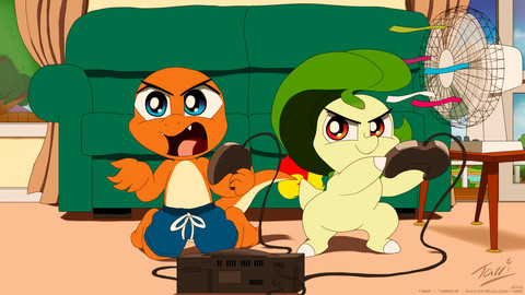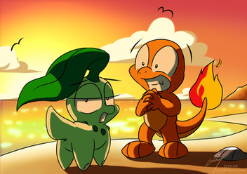 #charmander #chikorita #ed #fan #hot #hot_day #pokemon #spk #summer #sweating #tarri #starter_pokemon #starter_pokemon_kids