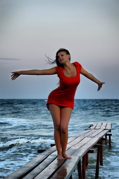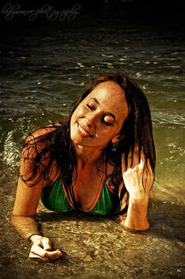 uber nice picture, good pose and nice location, the model is super cute. Must have taken a while to get that wave