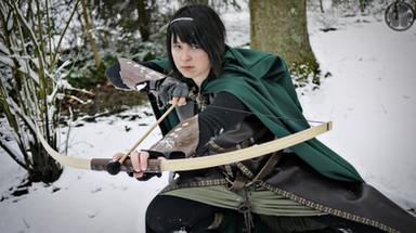 DISCLAIMER: I was strongly advised against doing anything other than standing and posing with the bow. Especially not trying to do a mid-jump pose with it. But, when I have an idea in my head I generally am deaf to all advice, but that's because I am an idiot and parttime applicant for the Darwin Awards. DO NOT TRY THAT AT HOME.