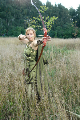 DISCLAIMER: I was strongly advised against doing anything other than standing and posing with the bow. Especially not trying to do a mid-jump pose with it. But, when I have an idea in my head I generally am deaf to all advice, but that's because I am an idiot and parttime applicant for the Darwin Awards. DO NOT TRY THAT AT HOME.