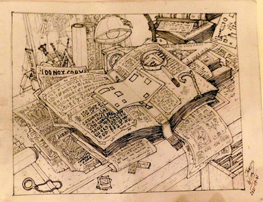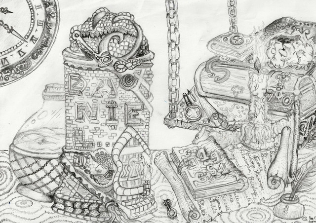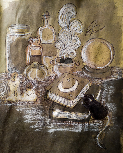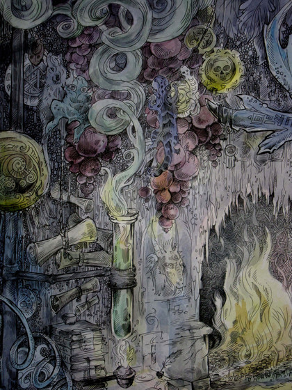 #alchemy #book #bottle #chemistry #ende #fragment #michael #michaelende #night #scroll #skull #wishes #nightofwishes #wunschpunsch #labaratory #illustration #traditionalart