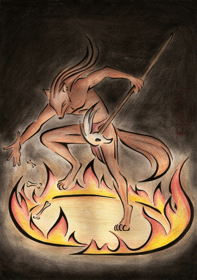 #anthro #anthrowolf #camp #canine #crow #dance #dog #flowers #fox #fun #furry #furrywolf #milky #milkyway #night #play #sand #shape #sky #stars #traditional #tribal #wild #wolf #way #fire #illustration #traditionalart