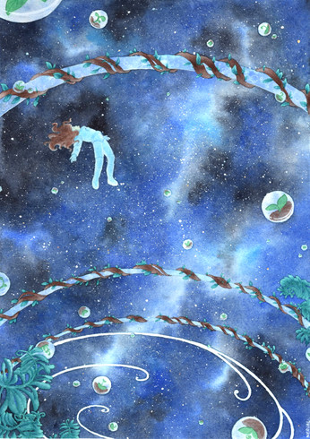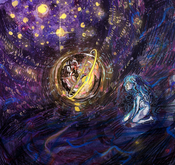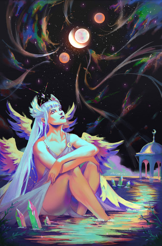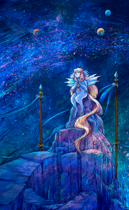 #space #acrylic #alien #blue #creature #crystal #doodle #fantasy #feathers #hair #imitation #long #night #nightsky #paints #peak #praying #ring #sketch #species #stars #tail #watercolor #watercolour #alienoc #alelu #spacecosmos #alien_oc #thenerdybirdy #cheskel