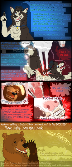 "I've watched you frolic around the Farm Faction like a mindless puppy ever since I arrived in Canidale, and if there's one thing I know for certain, it's that you're a mindless, stupid, childish waste of fur. That fawn would be better off with a grizzly bear than someone who can't even catch his own tail."